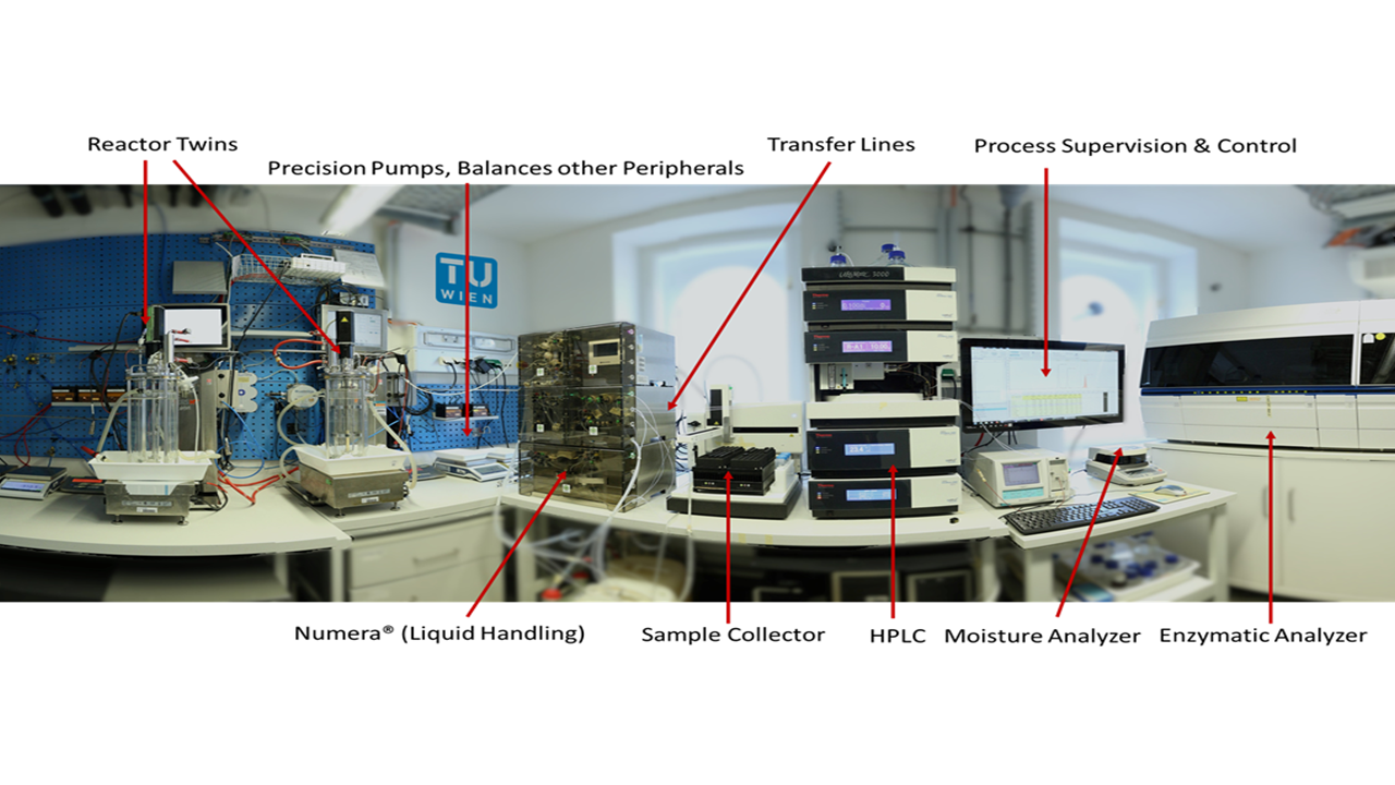 Our team in Vienna develops real-time capable computational models of bioprocesses, to predict key objectives such as biomass or product formation, and deploys them as Monitoring Devices, Softsensors or MPC (Model Predictive Control) that are capable of managing prolonged growth or feedstock variability.