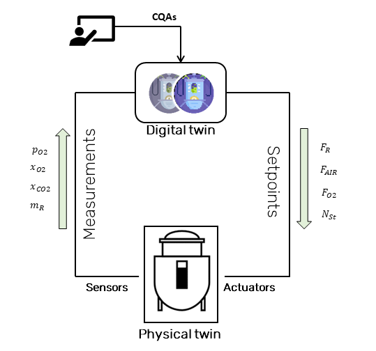These promising properties notwithstanding, biochemical processes currently hardly match industrial chemical conversions in terms of yield or scalability. Also, microbial growth and production are hard to control, in particular in the face high feedstock variability conferred by waste streams. The intensification of bioprocesses requires advanced monitoring and control strategies.
